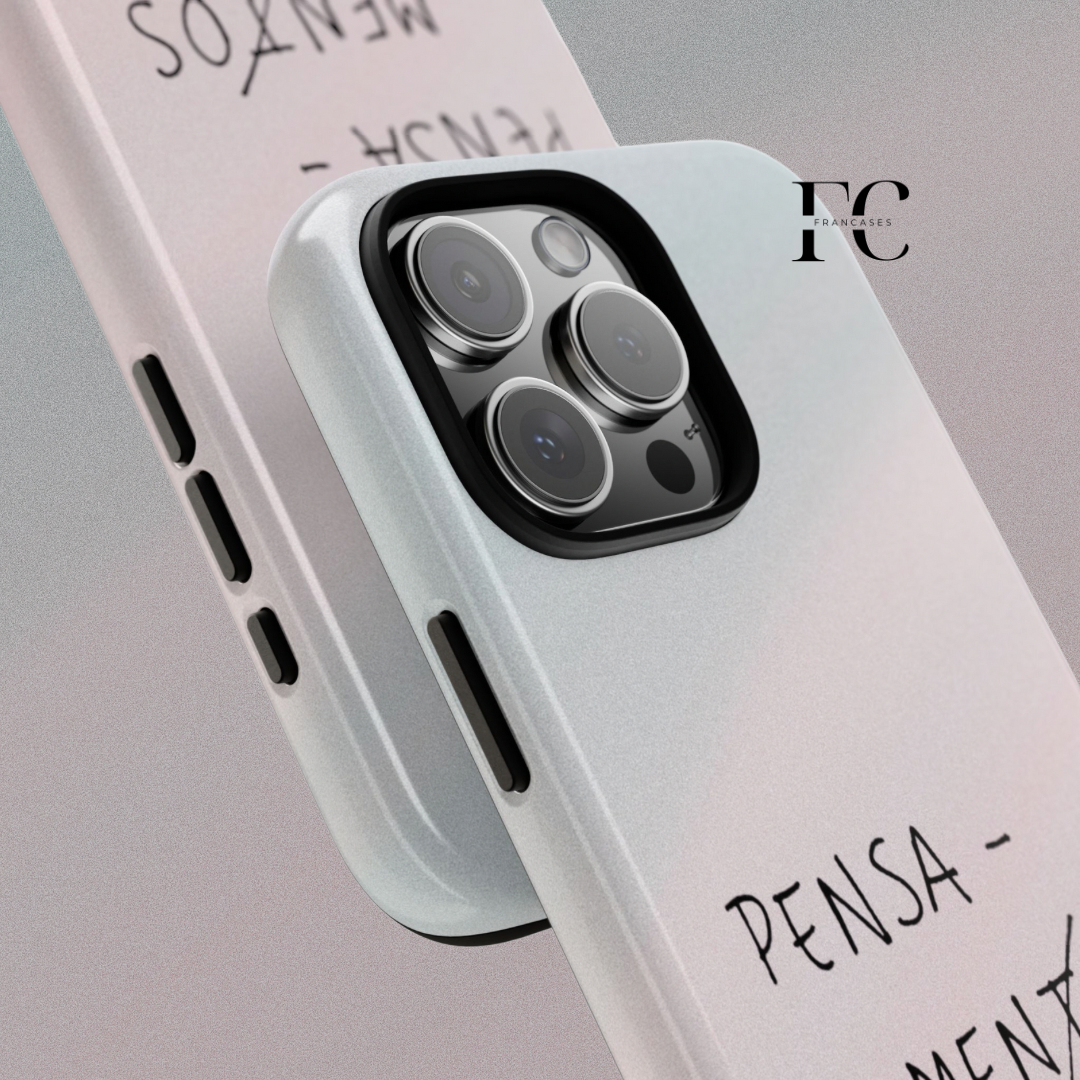 This Pensa menos phone case offers full ink density wrap and image transfer, providing excellent resistance to outdoor weathering. Made of durable materials with good shock absorption, this case is perfect for adults looking to protect their phone in style. It is relevant for everyday use, as well as for gifts during birthdays, holidays, and special occasions.